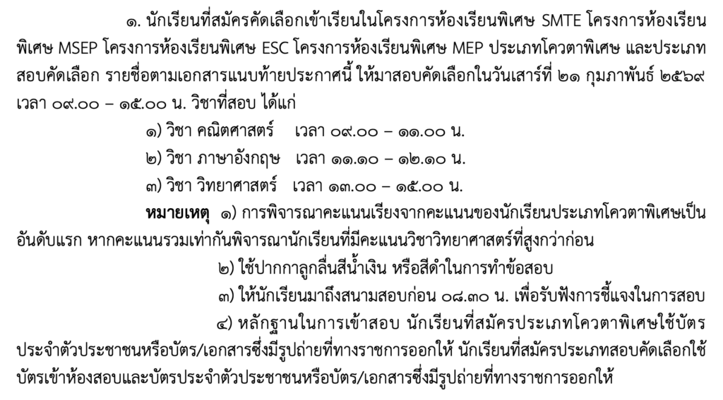 ประกาศรายชื่อนักเรียนที่สมัครสอบห้องเรียนพิเศษ ม.1 ปีการศึกษา 2569 / Update, ประชาสัมพันธ์ / By Admin Post Views: 1,821 📜 รายละเอียดประกาศและรายชื่อนักเรียน