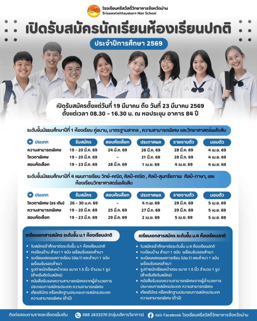 รับสมัคร ม.1 และ ม.4 ห้องเรียนปกติ ปีการศึกษา 2568