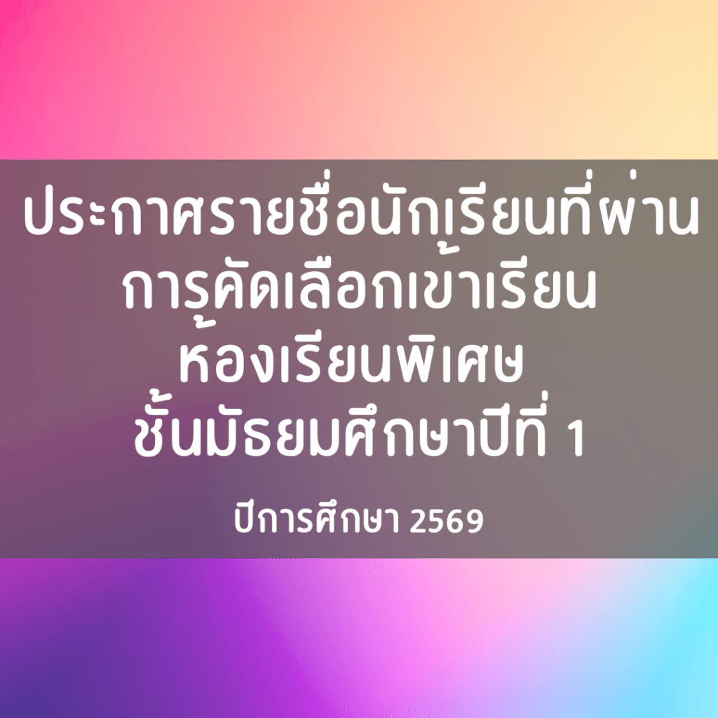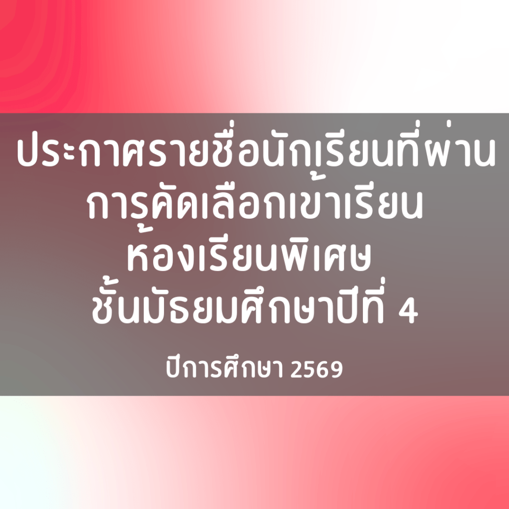 ประกาศรายชื่อนักเรียน ม.4 ห้องเรียนพิเศษ ปีการศึกษา 2569