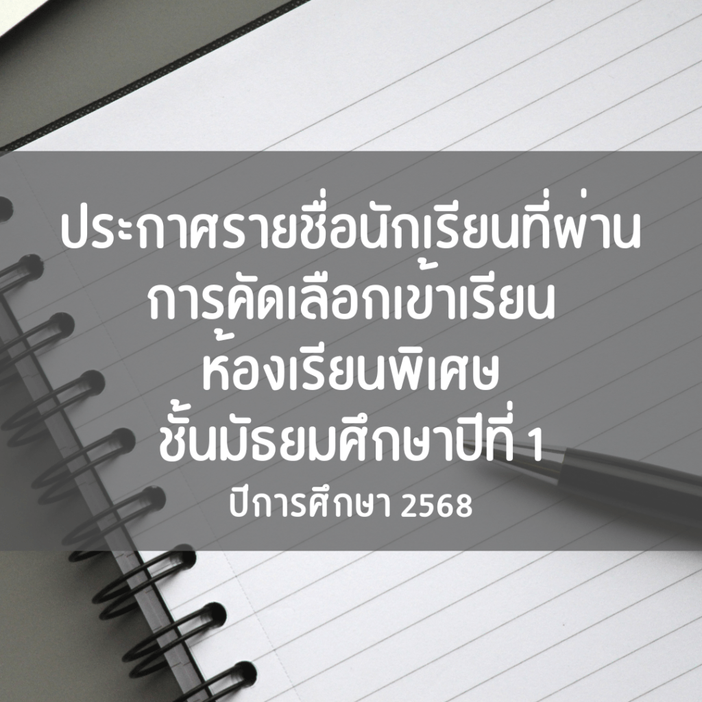 ประกาศรายชื่อนักเรียนที่ผ่านการคัดเลือกเข้าเรียนห้องเรียนพิเศษ ม.4 ปีการศึกษา 2568