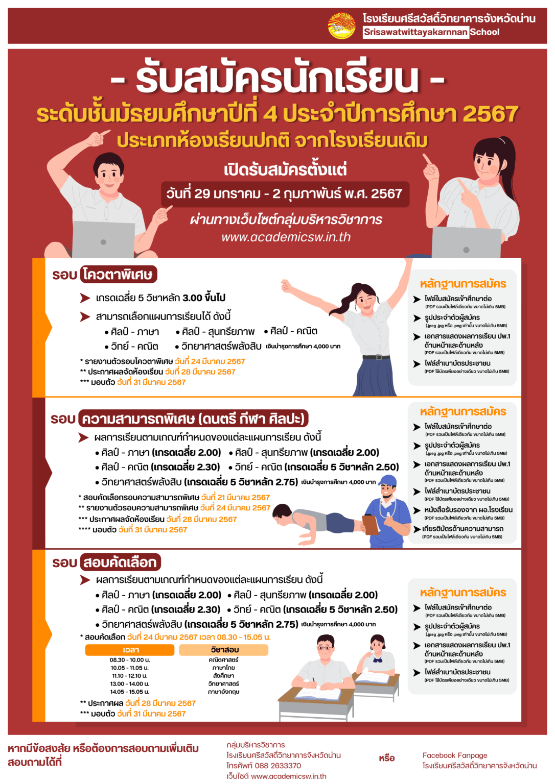 รับสมัครนักเรียน ม.4 ปีการศึกษา 2567 (โรงเรียนเดิม) ประเภทห้องเรียนปกติ